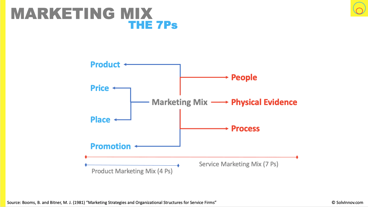 To address this criticism, Boom & Bitner introduced 3 additional Ps to derive the Service Marketing Mix. These new Ps are People, Physical Evidence and Process. This comes from taking a view that service and goods are fundamentally different.