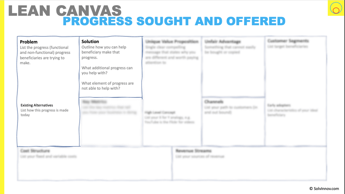Figure 3: Problem (progress sought) and Solution (progress offered) on the lean canvas