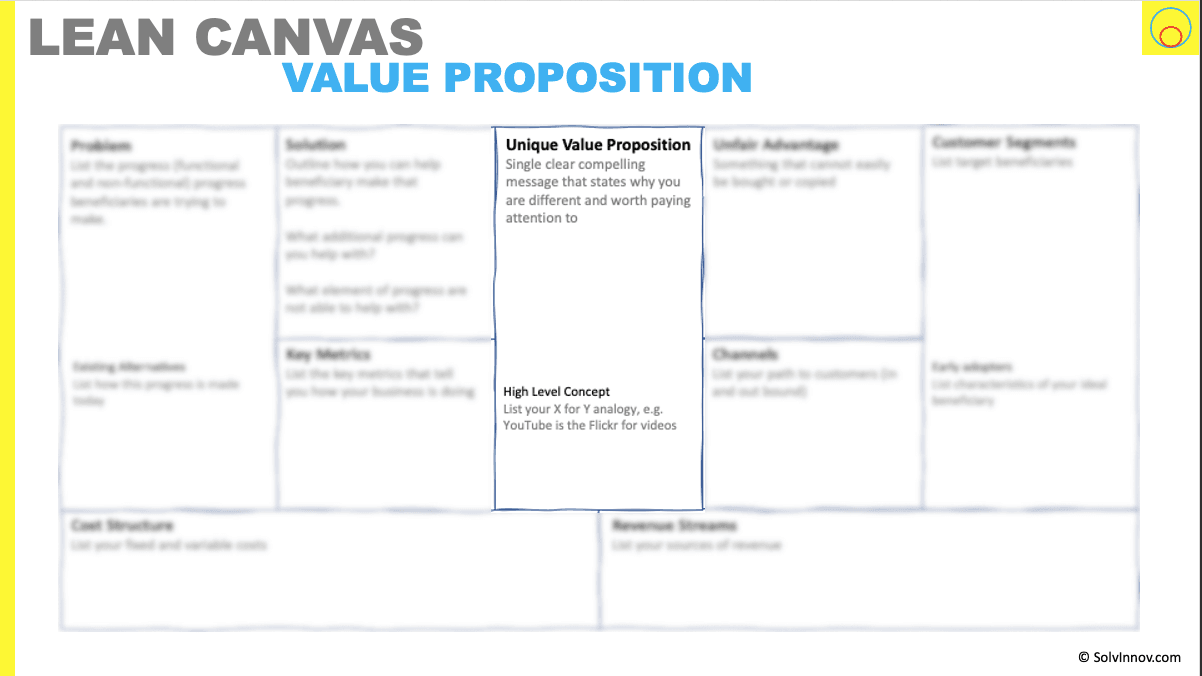 Let’s move on to the Unique Value Proposition and high-level concept segments.